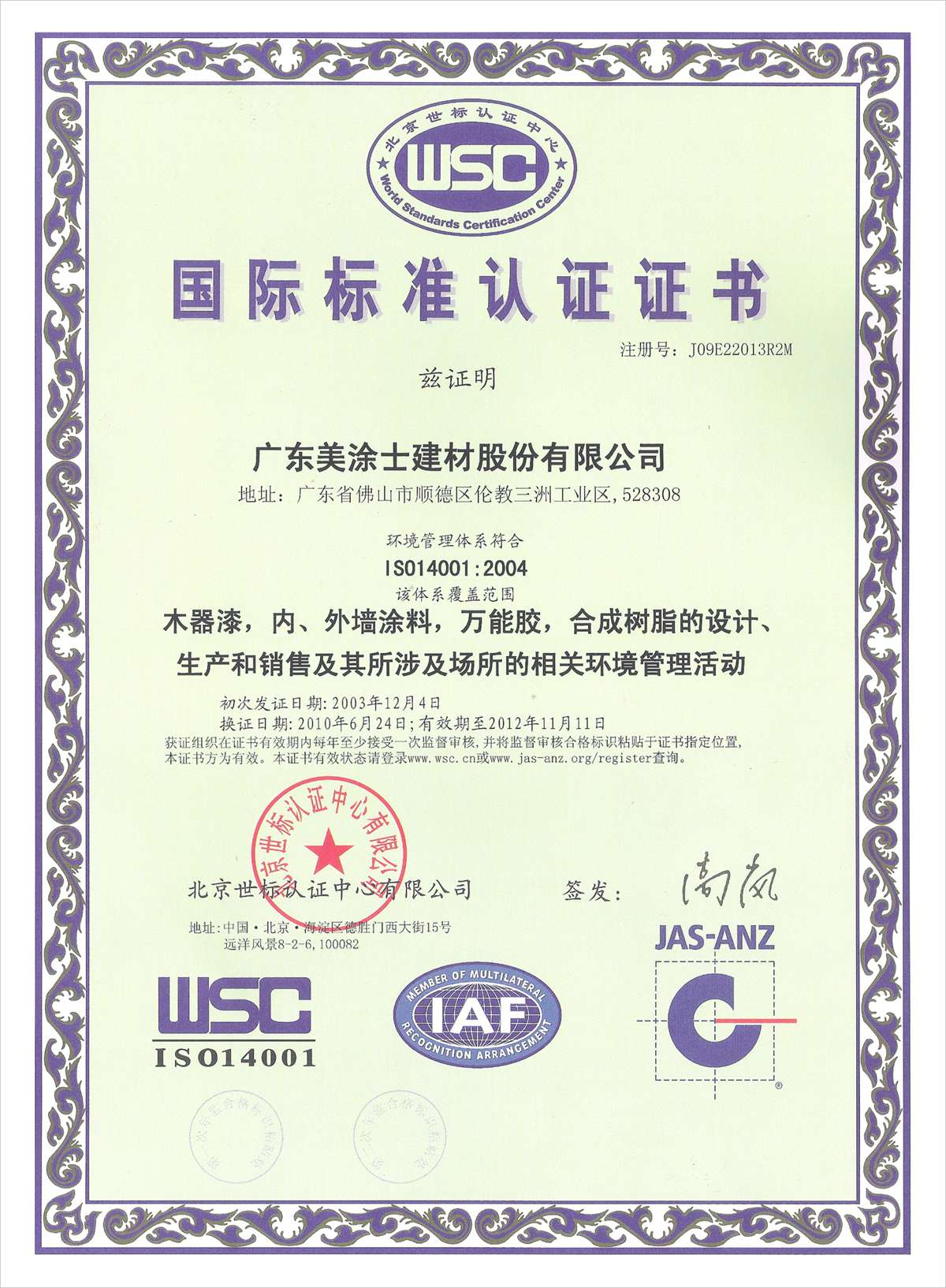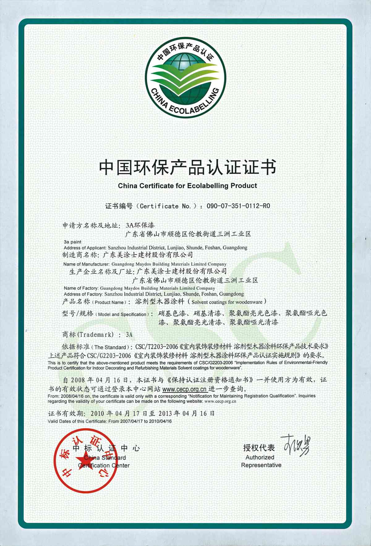 3A環(huán)保漆木器漆十環(huán)認證證書